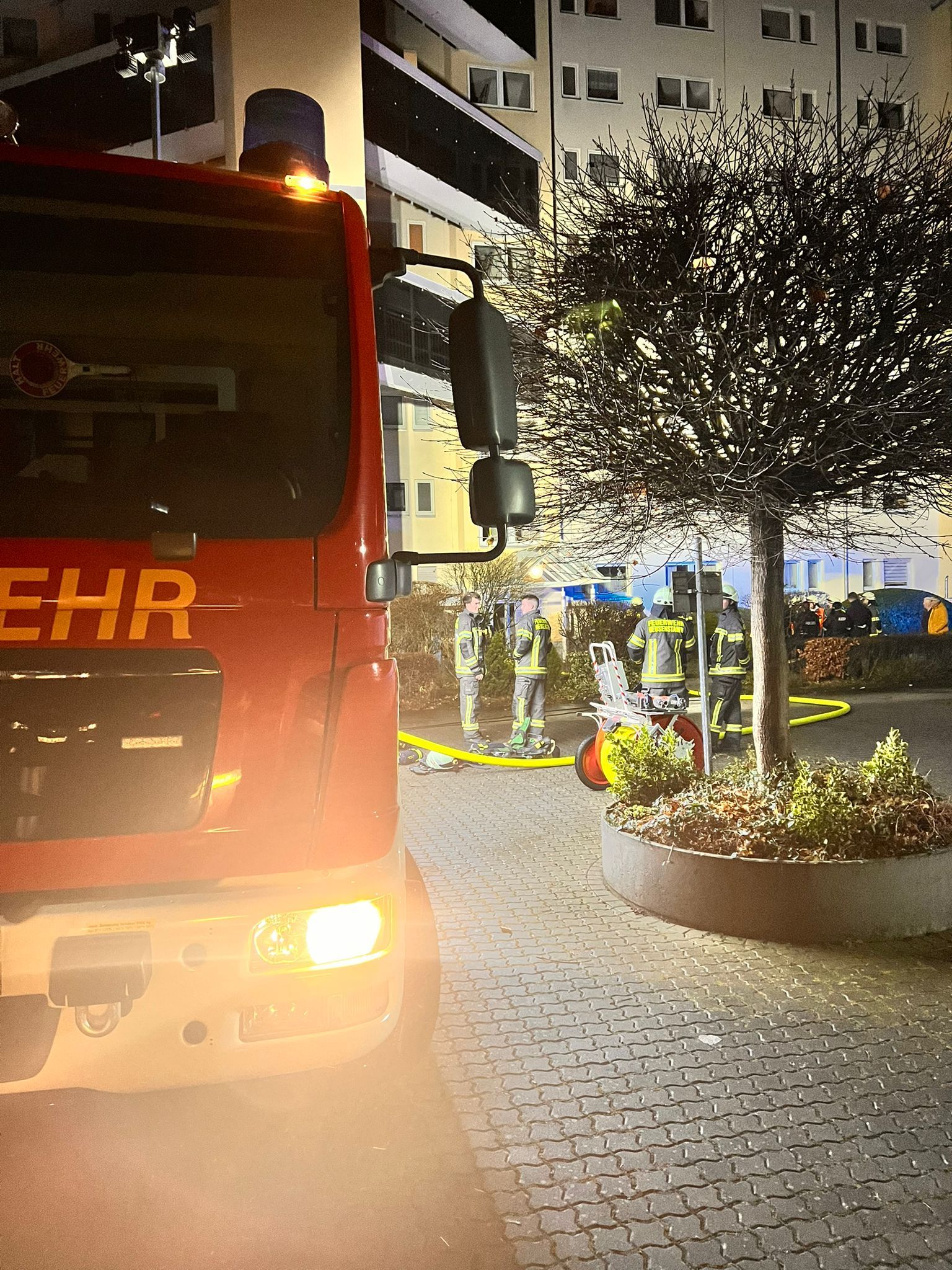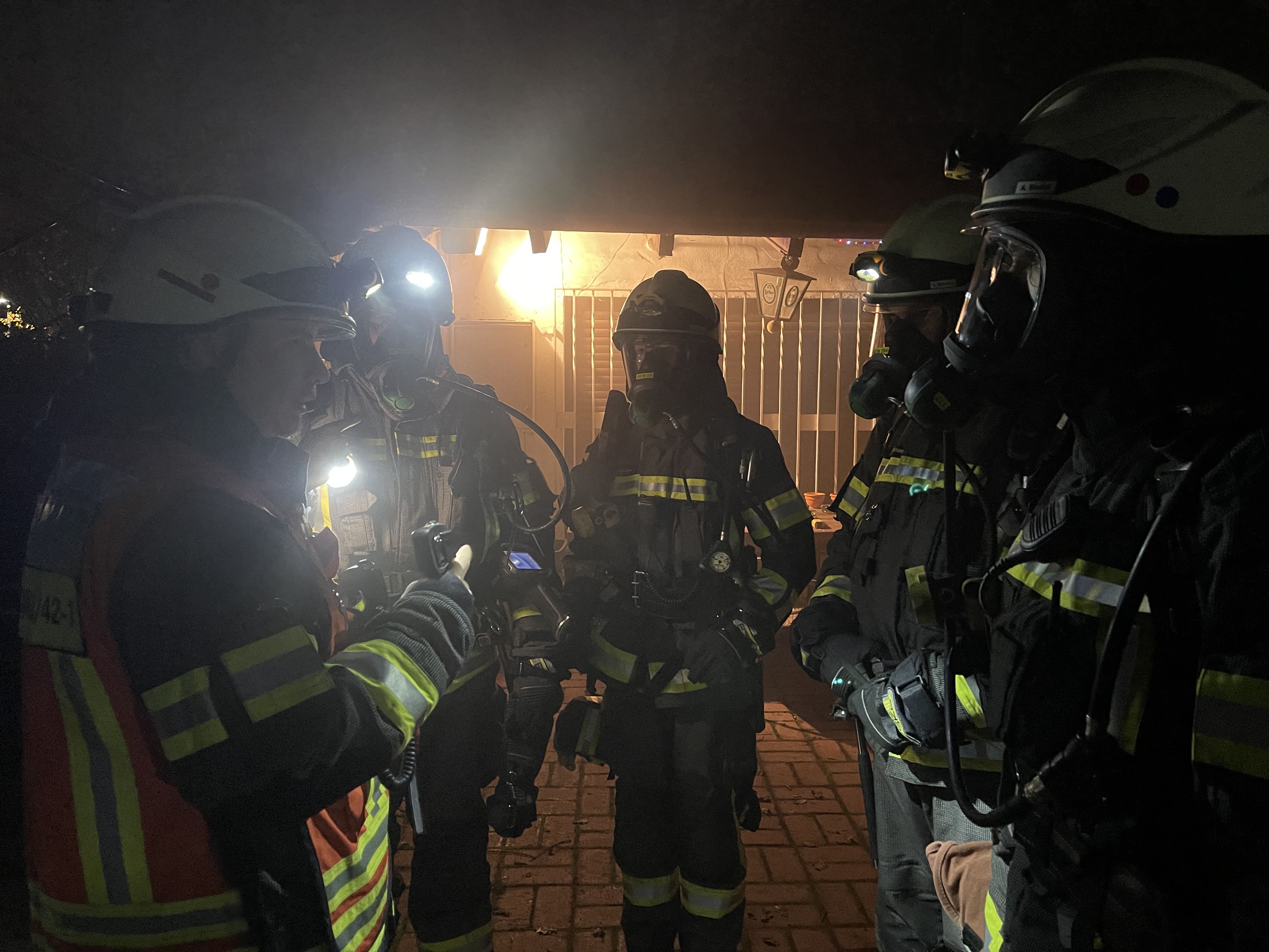 Der Angriffstrupp mit schwerem Atemschutz ausgerüstet, begab sich umgehend in die betroffene Wohnung und kontrollierte den vom Brand betroffenen Bereich mit der Wärmebildkamera. Der Bewohner wurde zur Untersuchung dem anwesenden Rettungsdienst übergeben, konnte aber leicht verletzt vor Ort bleiben.