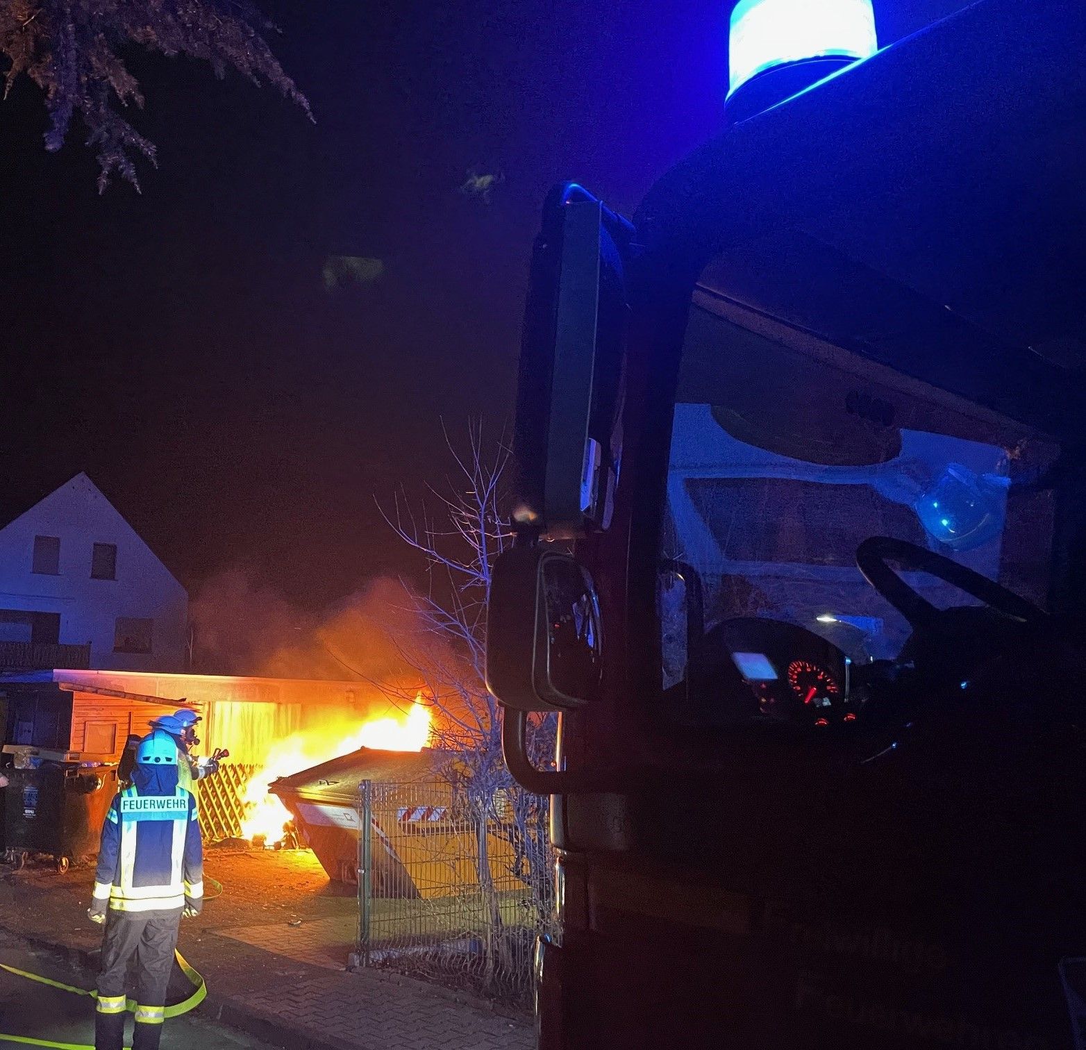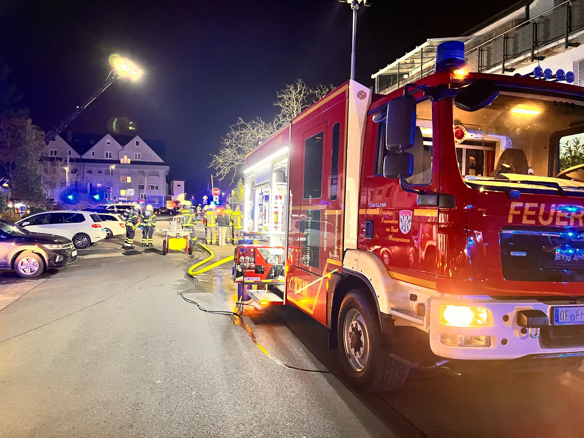 Am heutigen Mittwoch (3. September 2025) erreichte die Feuerwehr des Stadtteils Heusenstamm um 2:45 Uhr die Meldung über eine Rauchentwicklung im Bereich des ehemaligen Fernmeldezeugamts an der Philipp-Reis-Straße im Westen der Schlossstadt. Kurz nach dem Ausrücken wenige Minuten nach dem Alarm informierte die Leitstelle des Kreises Offenbach den Einsatzleiter Markus Konrad darüber, dass trotz der nächtlichen Uhrzeit mehrere Anrufe eingegangen seien. Vor Ort bestätigte sich die Rauchentwicklung. Diese stammte aus einem als Lager genutzten freistehenden Gebäude auf dem Gelände zwischen Philipp-Reis-Straße und Heinrich-von-Stephan-Straße und es war deutlich Feuerschein zu sehen.