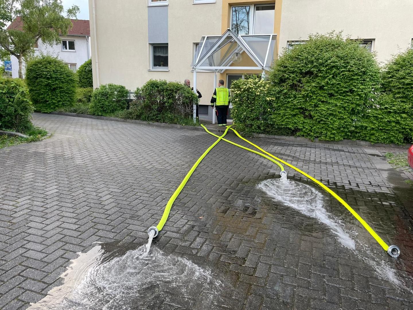 Die Tür wurde geöffnet, die Wasserzufuhr abgestellt, das Wasser mit einem Wassersauger aufgenommen.