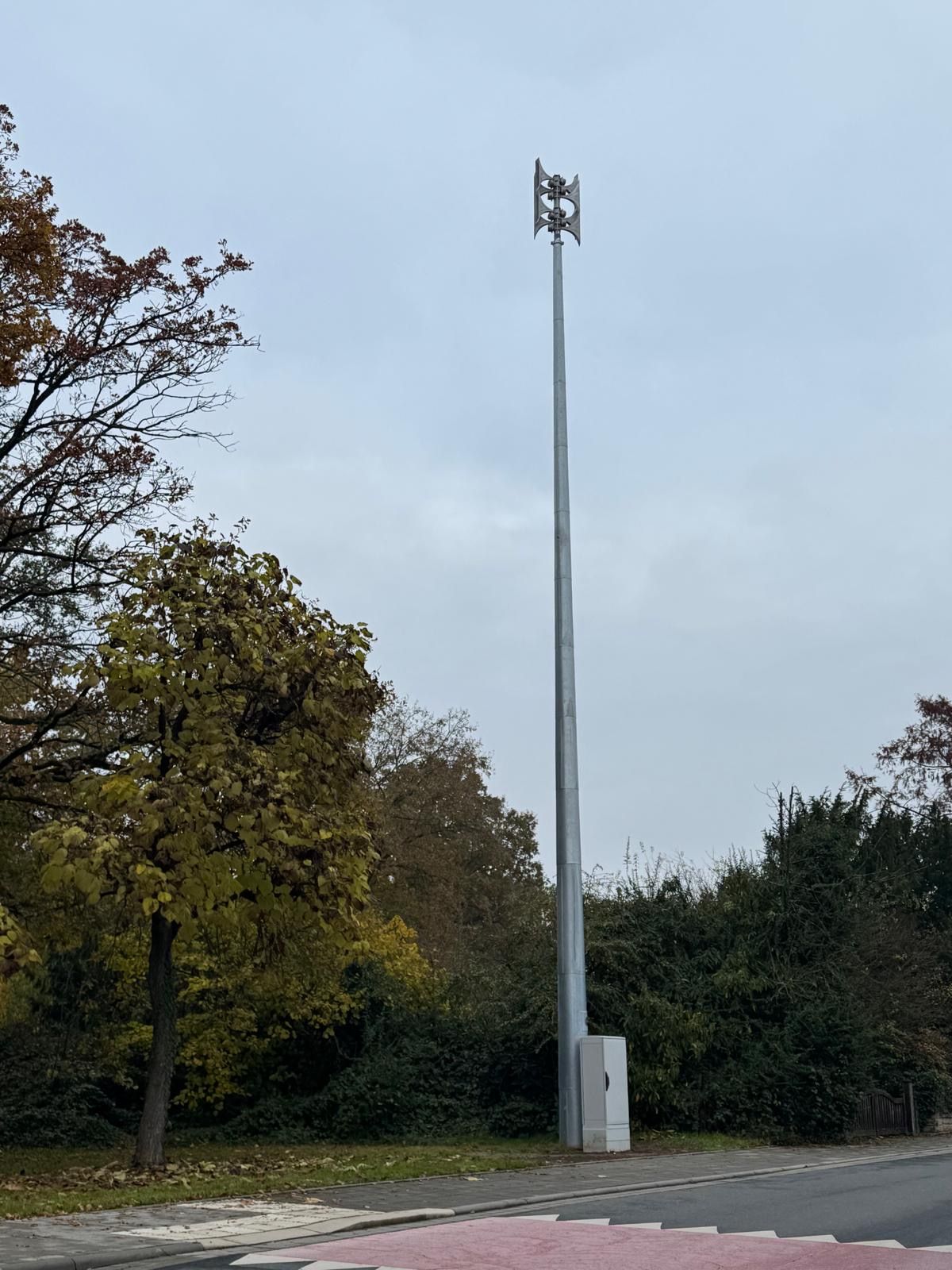 4.) Freitag, 18. Februar 2022, 18:25 Uhr: (Foto) Ampelteile hängen in die Fahrbahn, Frankfurter Straße. Im Kreuzungsbereich "Alte Linde" zeigt die Ampel von Fahrtrichtung Neu-Isenburg Richtung Innenstadt in die verkehrte Richtung und ist nicht mehr sichtbar für den verkehrsteilnehmer. Keine Absturzgefahr von Bauteilen der Ampelanlage. Der Signalhalter wurde von der Feuerwehr gerichtet. Während der Maßnahmen war die Fahrspur Richtung Innenstadt kurzzeitig voll gesperrt.