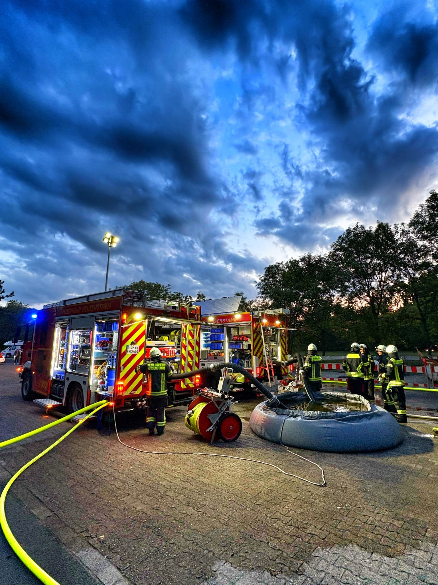 Wöchentlich donnerstags ab 19:30 Uhr ist Übung oder Ausbildung im Stadtteil Heusenstamm. Am vergangenen Donnerstag wurde eine Waldbrandübung im Bereich zwischen Friedhof und Schloss durchgeführt. Die Übungsschwerpunkte lagen auf dem Aufbau einer Wasserversorgung vom Bieberbach zur Brandstelle, das wassersparende Eindämmen des Brandes bis eine stabile Wasserversorgung stand und die Einsatzabwicklung im Einsatzleitwagen mitsamt der Dokumentation und Einsatzführung. Ungefähr 30 Feuerwehrfrauen und -männer stellten sich der Herausforderung und nahmen Lerneffekte für die Bekämpfung von Wald- und Wiesenbränden mit. Vorbereitet wurde die Übung von Wehrführer Marco Schmidtke.