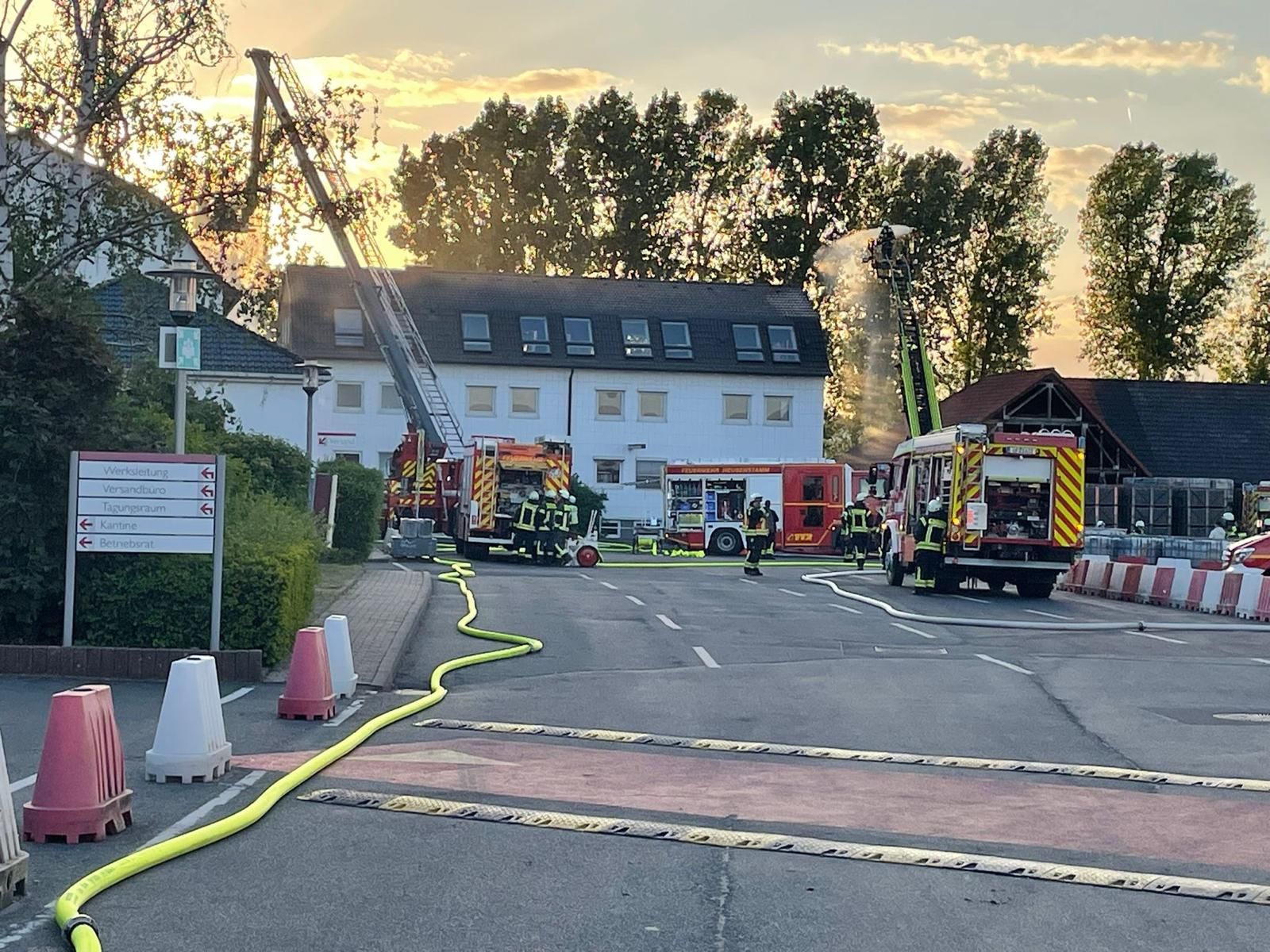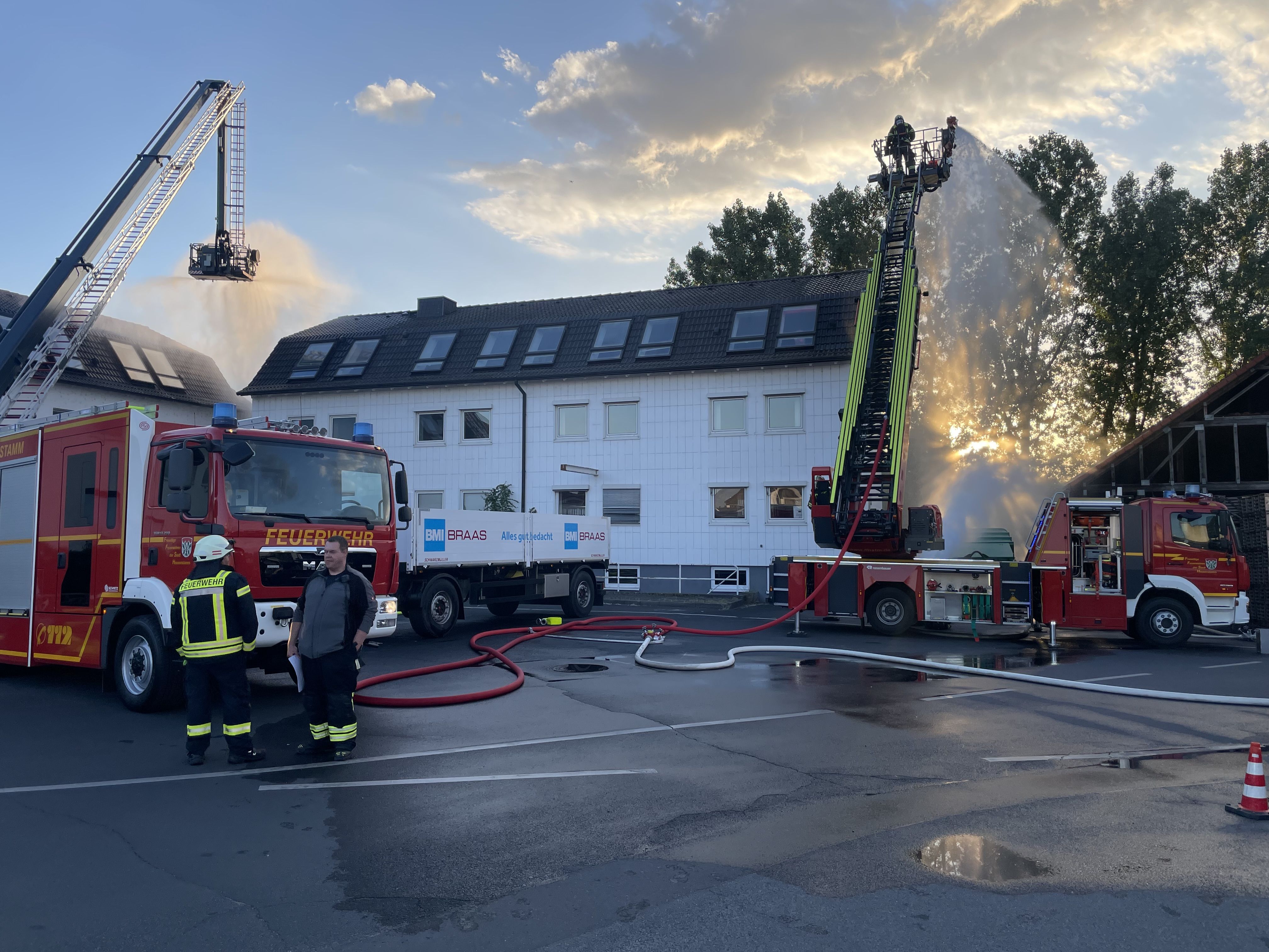 Ein großer Dank geht an die Verantwortlichen der Firma BMI Group (ehemals Braas), die einmalmehr ihr Gelände der Feuerwehr zur Verfügung stellten. Auch für die Verantwortlichen der Firma BMI ist es ein Test der internen Abläufe für den Ernstfall. Beginnend bei der vorhandenen Ortskenntnis für die örtliche Feuerwehr über das Testen der Zufahrtswege und Rettungskonzepte bis hin zu erlangten Erkenntnissen für die Anpassung der Feuerwehrpläne und dem Stresstest der Wasserversorgung auf dem Gelände hat es eigentlich nur Vorteile, wenn die Feuerwehr sich auskennt und im Übungsfall zu Gast sein darf. Es ist leider nicht mehr selbstverständlich so viel Engagement in der Vorbereitung der Übung und Vertrauen in die Arbeit der Rettungskräfte herzlich ehrlich entgegengebracht zu bekommen.